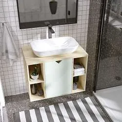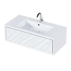 Столешница под стиральную машину во всегда актуальном белом цвете, которая позволяет с максимальным комфортом и удобством организовать пространство даже в небольшой ванной комнате. Исполненная в универсальной и одновременно стильной прямоугольной форме, она включает в себя место под раковину и функциональную зону для размещения косметики, личных принадлежностей и аксессуаров. Материалом исполнения столешницы является МДФ, а ее дополнительная защита от воздействия влаги и внешних повреждений обеспечивается покрытием корпуса пленкой ПВХ.Характеристики: