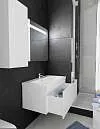 Стильная и одновременно функциональная тумба с раковиной, воплощенная из надежных, качественных и проверенных временем материалов, обеспечивающих ее комфортную и максимально приятную ежедневную эксплуатацию. Корпус и фасад из МДФ от бренда Egger покрыты плёнкой ПВХ для дополнительной защиты от влаги и внешних повреждений. Фурнитура Hettich обеспечивает мягкое, плавное и бесшумное открытие и закрытие ящиков. Дизайн в духе минимализма, полностью лишенный громоздкости, позволяет модели гармонично дополнять любые ванные комнаты в современной стилистике.Характеристики: