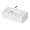 Тумба под раковину* Milacco - это изысканная мебель для ванной комнаты, выполненная в универсальном белом цвете, станет украшением современного интерьера. Модель шириной 100 см объединяет в себе элегантный дизайн и продуманную функциональность, оснащена вместительным выдвижным ящиком для хранения. Изящные стеклянные боковины придают конструкции легкость и воздушность. Тумба изготовлена из ЛЛСП с технологией PROTECT и покрыта итальянской эмалью, поэтому изделие не деформируется во влажной среде и сохранит первоначальный вид на долгие годы. Ящик с доводчиками гарантируют плавное и бесшумное закрывание.Характеристики: