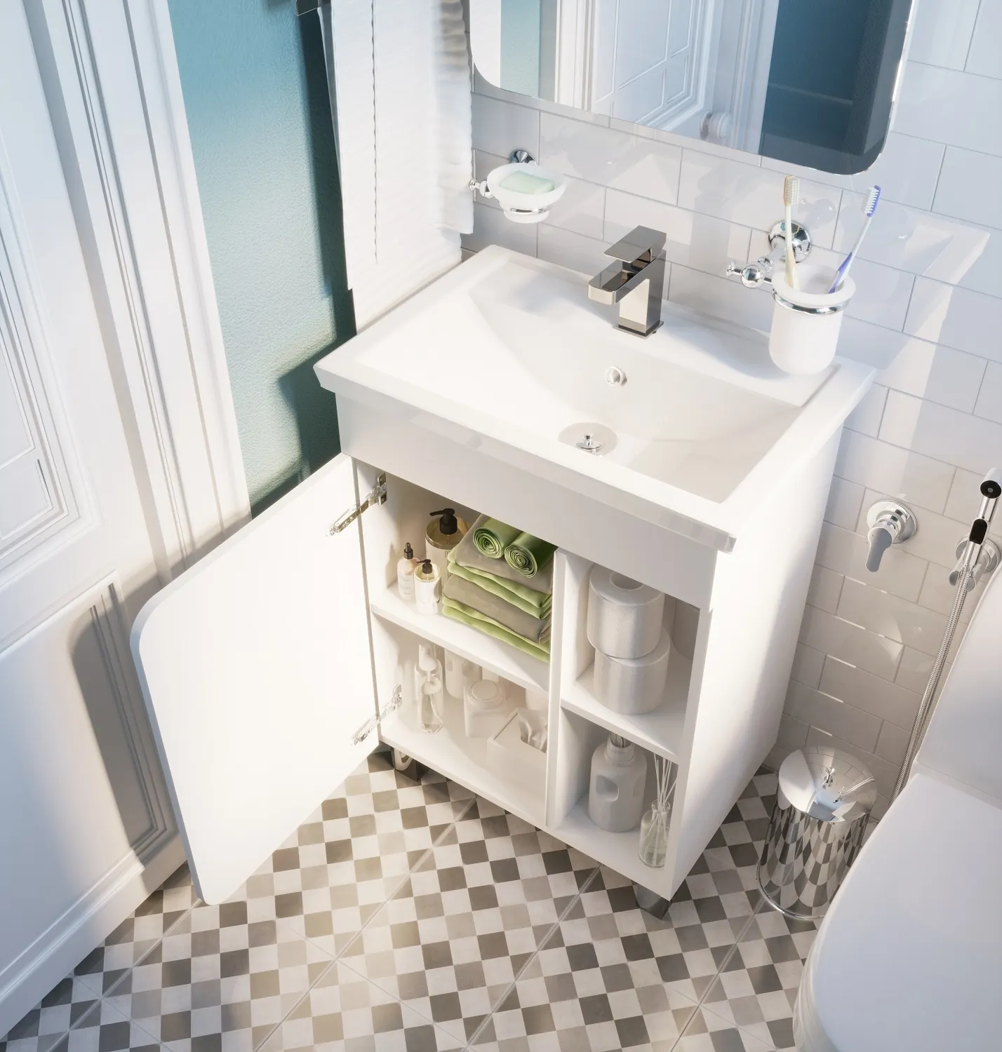 11 690 Р Тумба под раковину Вита 65Н 2д. белый глянец, МДФ