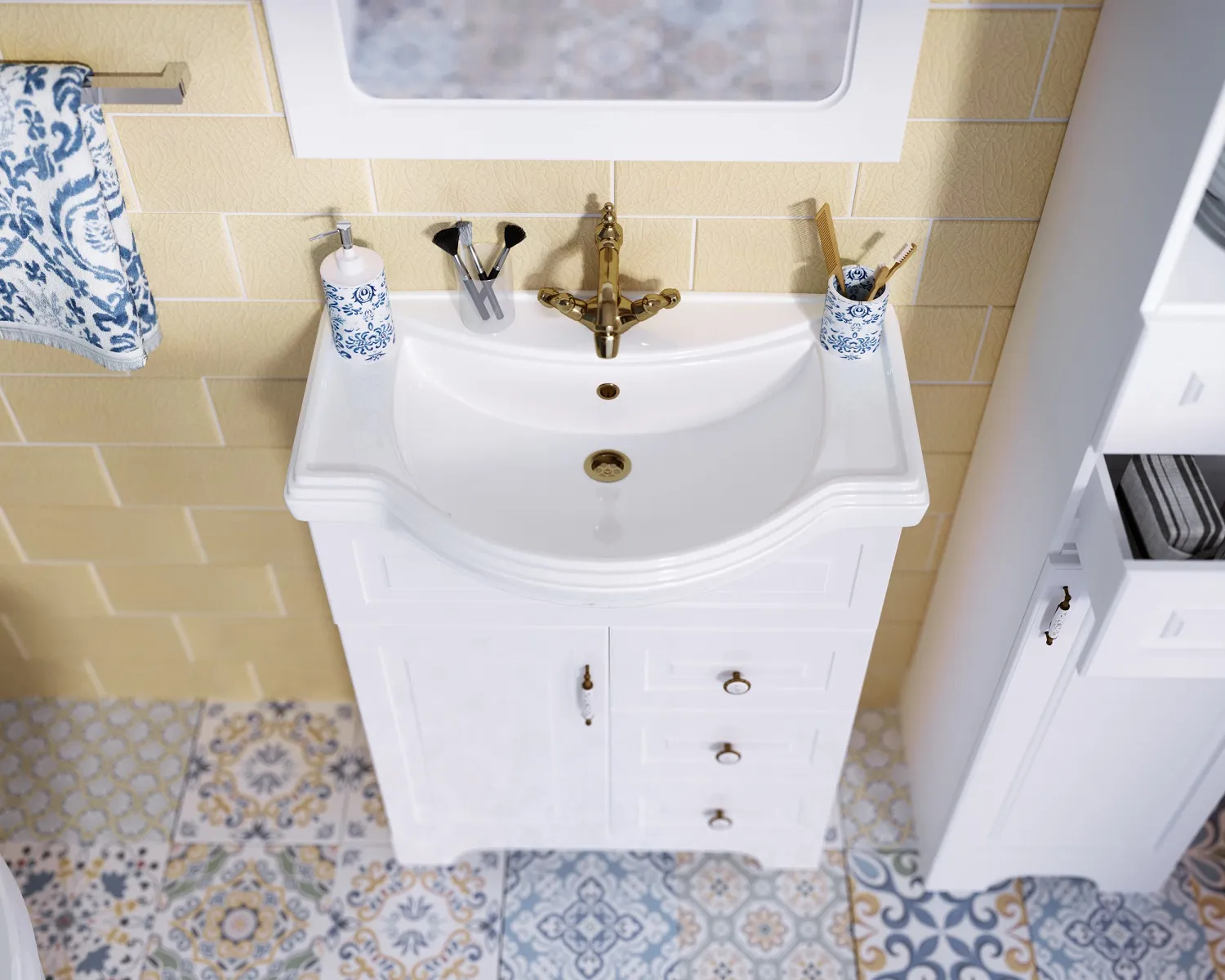Тумба под раковину ПРОВАНС 65Н 3в.я. 1д. белый глянец