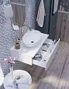 Изящная и лаконичная тумба, буквально парящая в воздухе. Она превосходно подойдет для функционального дополнения небольших пространств, а также для тех, кто отдает предпочтение легким, негромоздким и при этом стильным предметам мебели для ванной комнаты. Белый глянцевый фасад эффектно дополнен столешницей из белого стекла, которая, тем не менее, не нуждается в трудоемком уходе и надолго сохраняет свой привлекательный и эстетичный внешний вид. Дизайн тумбы воплощает современный и практичный подход к функциональности мебели и удобству ее ежедневного использования.