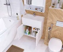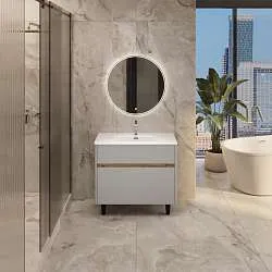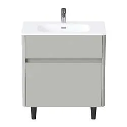 Тумба с раковиной, которая отличается невероятной компактностью и уникальными габаритами, которые не встретить ни у одной другой популярной на рынке модели - глубина тумбы составляет всего 22 см. Это отличное решение для небольших ванных комнат, в которых остро стоит вопрос экономии пространства. Несмотря на небольшие размеры тумба по-прежнему остается бескомпромиссно функциональной - она включает в себя две закрытые и две открытые полки разной высоты, которые позволяют закрыть вопрос хранения абсолютно любых вещей и предметов. Лаконичный дизайн с идеальной геометрией на сегодняшний день актуален как никогда ранее.Характеристики:
