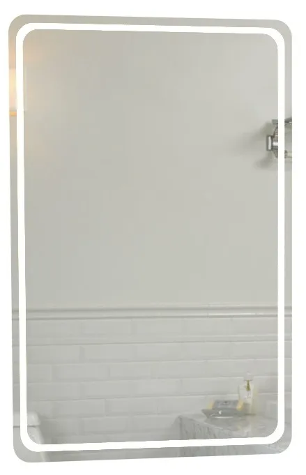 Зеркало, дизайн которого создан на стыке классических и современных решений в оформлении аксессуаров для ванной комнаты. Оно имеет традиционную форму прямоугольника с мягкими краями, которая подчеркивается при помощи лаконичного рисунка, выполненного методом художественного матирования. Светодиодная подсветка по всему периметру делает контуры зеркала еще более мягкими и обтекаемыми, что помогает создать в ванной комнате особенно уютную и комфортную атмосферу. Среди других преимуществ модели можно выделить ее изготовление из французского или бельгийского зеркального полотна на основе серебряной амальгамы.